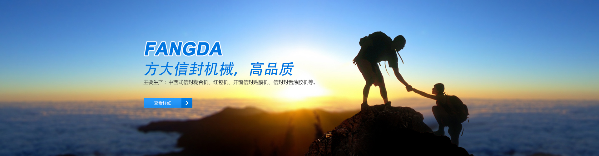 瑞安方大信封機械有限公司,是專業生產信封機糊合設備系列產品的企業,主要產品有:中西式信封糊合機、紅包機、開窗信封貼膜機、信封封舌涂膠機等。實力來自規(guī)模,品質源自專業。我廠擁有專業老練的工程設計人員,經驗豐富的生產安裝人員,嚴謹認真的質量檢驗人員,從而保證了所生產機械的優(yōu)良品質。此外,我廠也將從技術上、性能上不斷改進提高,以更好的滿足客戶的需求?!翱蛻糁辽?,服務為本”是我廠長期一貫的服務理念,從安裝、測試、保養、維修等售后服務,我們會給予客戶充足的信息資訊與技術支持,因此在業界獲得良好的口碑及信譽,您的滿意是我們的榮耀!歡迎您來電查詢、來人參觀,我們一定能給你滿意的答復!秉承“顧客至上,銳意進取”的經營理念,堅持“客戶為先”的原則為廣大客戶提供溫馨的服務。歡迎惠顧!